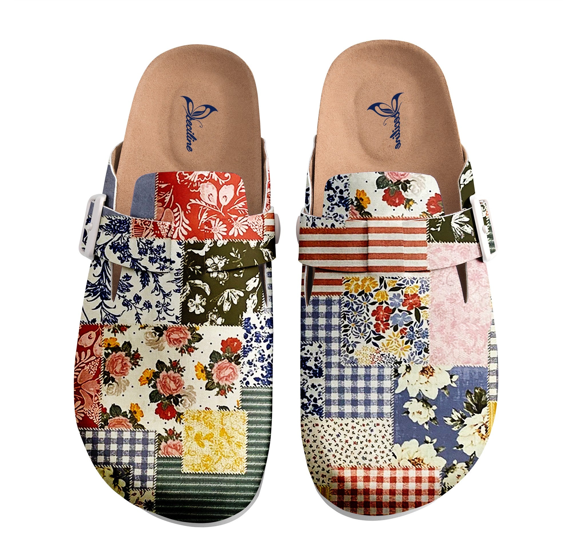 This design blends vintage and modern aesthetics with a variety of floral patterns arranged in harmonious color blocks. The deep green base complements soft hues like pink and blue, evoking a nostalgic feel, while white and blue flowers paired with striped and checked backgrounds add a playful touch. The delicate details of the petals and leaves convey the timeless beauty of passing time, offering a sense of warmth and craftsmanship.