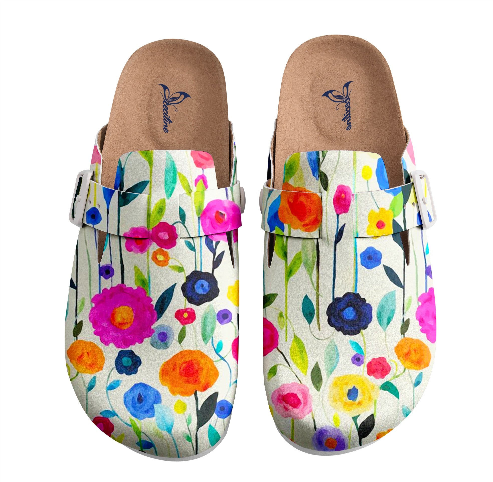 This design features a vibrant array of colorful flowers, each with unique shapes and charm. The soft light-colored background contrasts with the flowers, filling the composition with life and energy. The flowers' arrangement, combined with dynamic lines, creates a whimsical, modern feel, transporting viewers to a dreamy garden with a refreshing and joyful visual experience.