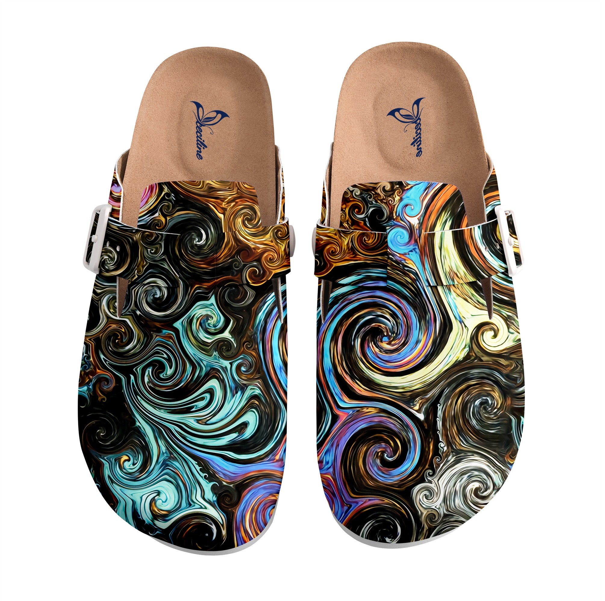 The design of this shoe showcases an abstract art style. The shoe surface is filled with vibrant, swirling lines in deep blue, light blue, gold, orange-red, purple, and other colors that intertwine and blend. The lines are smooth and dynamic, creating a lively and surreal visual effect, as if the colors are in motion, delivering a strong visual impact and limitless room for imagination.