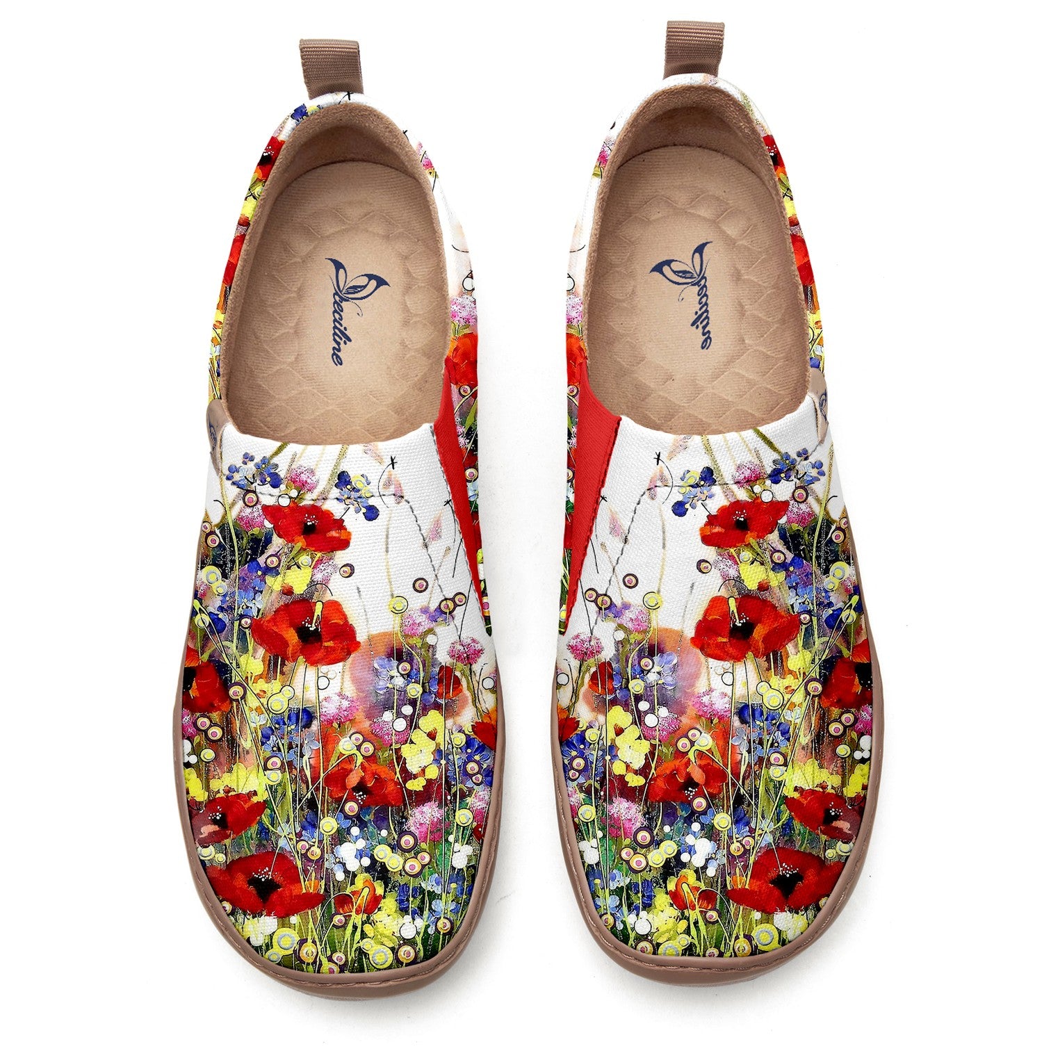 This design showcases a vibrant floral world, with red, yellow, and blue flowers blooming together in a colorful sea. The layered petals are intricately detailed, evoking the gentle sway of flowers in the breeze. The overall scene is both dreamy and full of natural vitality, immersing the viewer in a peaceful, lively garden filled with hope and beauty.