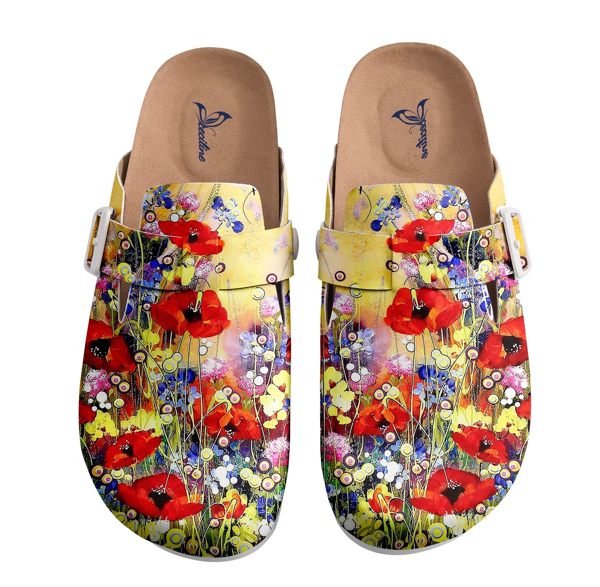 This painting features a vibrant world of flowers and plants, with red wildflowers blooming passionately under the sun. Purple, yellow, and white accents add depth and energy, bringing the scene to life. The warm yellow background creates a dreamy atmosphere, celebrating the beauty of life and nature’s joy.